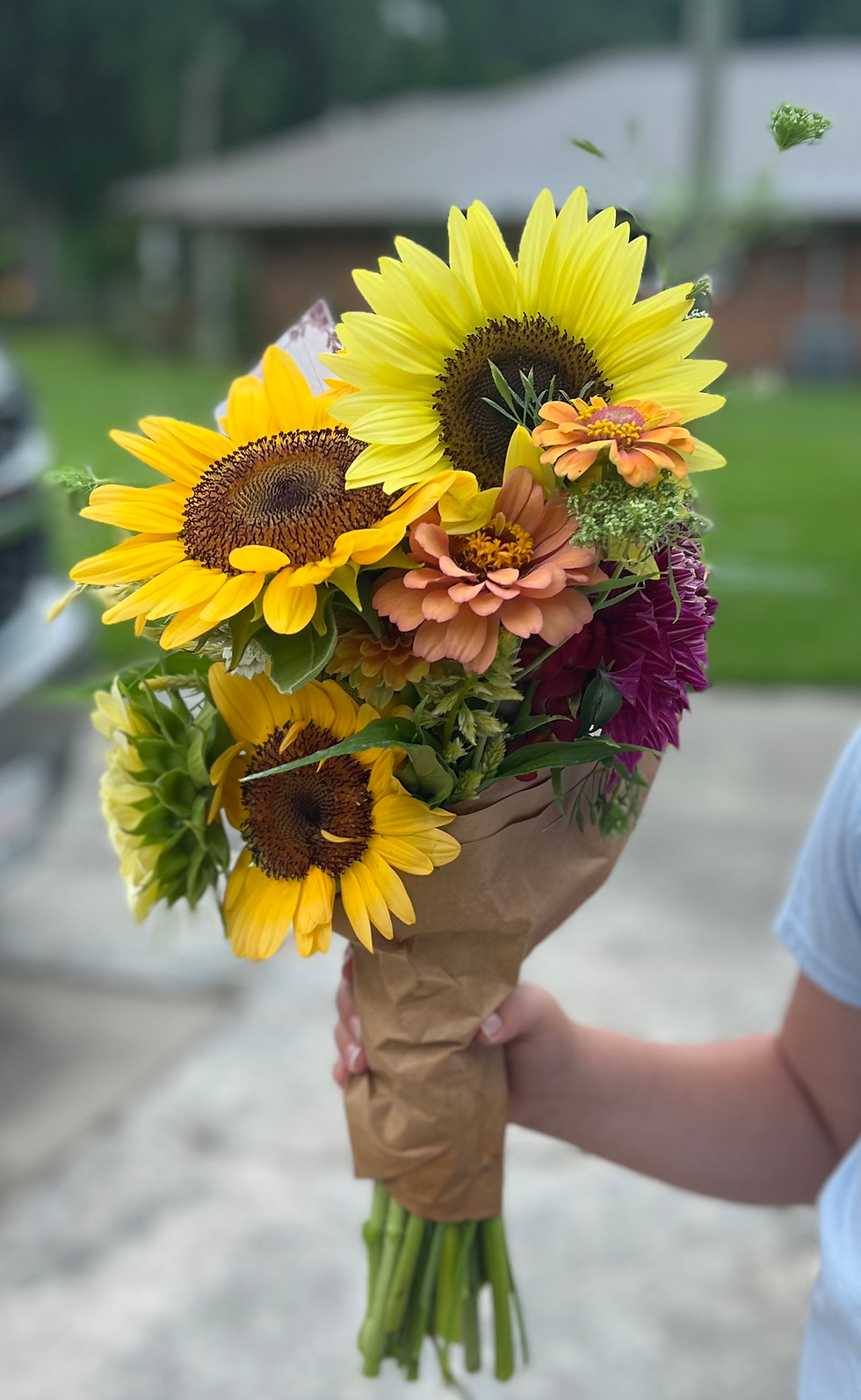 Hey y'all! I am thrilled to have you here at our small flower farm in Livingston, Louisiana. I want to share my passion by providing you with local, in-season fresh cut flowers, bringing the beauty of our blooms directly from our farm to your door. Thank you for supporting my journey as your go-to bloom dealer!